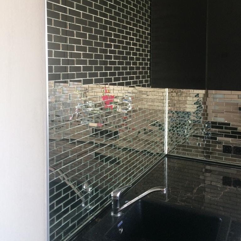 Зеркальная плитка не только с достоинством выдерживает эти испытания, но и выполняет другую немаловажную роль – подсвечивает столешницы. Обычно встраиваемая кухонная подсветка необходима для освещения рабочей поверхности. Но в этом случае, зеркальная плитка вполне способна справиться с этим делом.